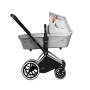 Коляска 2 в 1 Cybex Priam Koi - эксклюзивная модель от немецкого бренда, разработанная вместе с лучшими специалистами в области дизайна. Это настоящий прорыв на рынке детских товаров: вместо безликих и однообразных изделий была выпущена необычная модель, которая обязательно выделит Вас из толпы. Все блоки выполнены в едином стиле и украшены аппликациями японских рыбок кои. Каждая деталь подчиняется любому Вашему движению, пользоваться таким продуктом - одно удовольствие. Люлька может использоваться как переноска или мобильная кроватка: при снятии с шасси модуль устанавливается на специальные ножки. Высокое прогулочное сидение приспосабливается для кормления малыша дома или на прогулке. Два сменных блока невероятно удобны для ребенка, подстраиваются под его желания и анатомические особенности. Модули устанавливаются на стильное и легкое шасси, которое без труда преодолевает любые препятствия. Рама может складываться для перевозки в багажнике или вместе с прогулочным блоком.