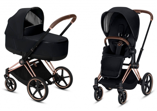Коляска 2 в 1 Cybex Priam (шасси Rose Gold) Premium Black