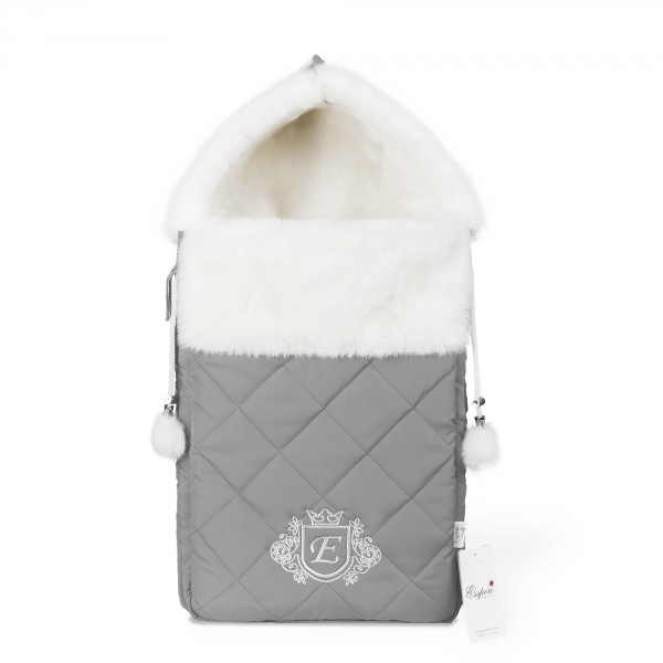 Конверт Esspero Elvis (100% шерсть) L-Grey - аксессуар в нежных оттенках, в который так и хочется закутаться холодной зимой. Изделие легко открывается и закрывается с помощью молний. Внутренняя часть выполнена из гипоаллергенного мягкого меха белоснежного цвета, внешний материал - плотная непродуваемая и непромокаемая ткань. Конверт декорирован фирменным логотипом производителя и вензелем.