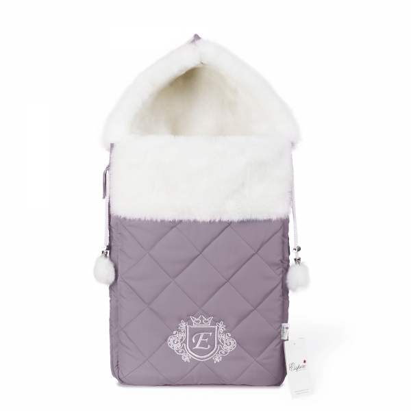Конверт Esspero Elvis (100% шерсть) L-Lilac - аксессуар в нежных оттенках, в который так и хочется закутаться холодной зимой. Изделие легко открывается и закрывается с помощью молний. Внутренняя часть выполнена из гипоаллергенного мягкого меха белоснежного цвета, внешний материал - плотная непродуваемая и непромокаемая ткань. Конверт декорирован фирменным логотипом производителя и вензелем.