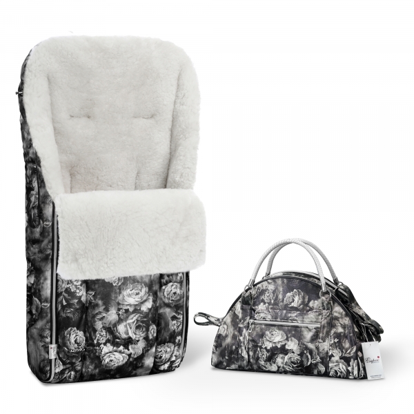 Конверт в коляску меховой Esspero Icelandic Sheep Flowers (натуральный мех) + Сумка на коляску