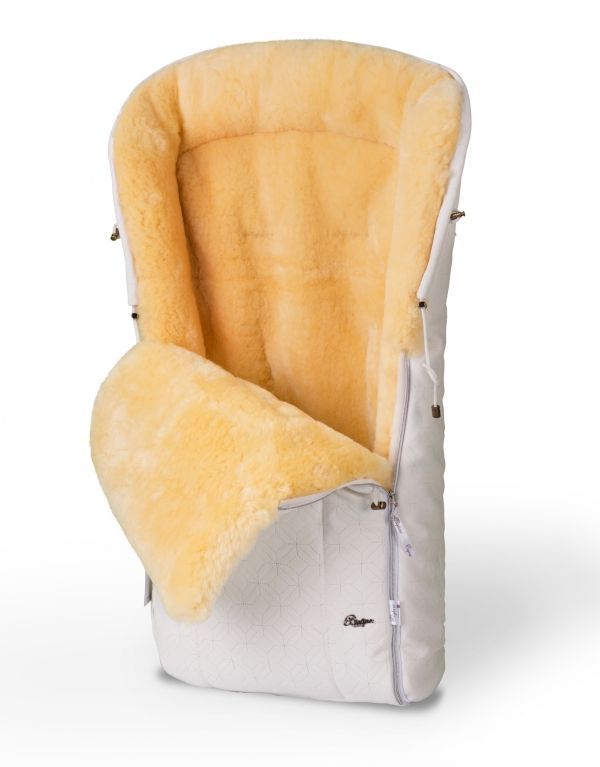 Конверт изготовлен из водонепроницаемой эко-кожи и натуральной овечьей шерсти, сохраняющей тепло внутри даже в самую морозную погоду. Подголовник крепко затягивается, надежно защищая малыша от погодных неурядиц. Все материалы соответствуют высшим санитарным нормами и являются гипоаллергенными.