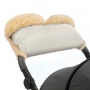 Муфта для рук на коляску Esspero Diaz Lux (Натуральная шерсть) Ruby - аксессуар, который просто незаменим в суровые российские морозы. Теплый овечий мех бежевого цвета защитит Ваши ручки от холодов и ветра, поэтому можно смело гулять с ребенком и в минусовую температуру. Внешняя часть из водонепроницаемого и непродуваемого материала не допустит попадания осадков внутрь муфты. Diaz Lux можно легко закрепить на сплошной ручке коляски при помощи кнопок.