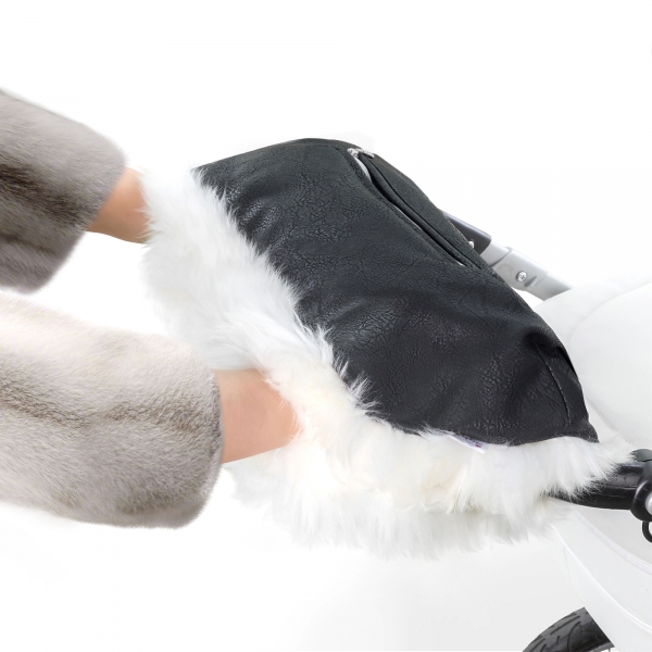 Муфта для рук на коляску Esspero Julia (Натуральный мех) Black Carbon - удобное и практичное изделие из натурального овечьего меха. Если впереди долгая зима, не забудьте приобрести этот аксессуар: он не даст Вашим рукам замерзнуть и пострадать от сильного ветра. Непродуваемая и непромокаемая экокожа не пропускает влагу внутрь. Муфта крепится с помощью кнопок, не сползает с ручки коляски. Для мелких предметов имеется специальный кармашек на молнии.