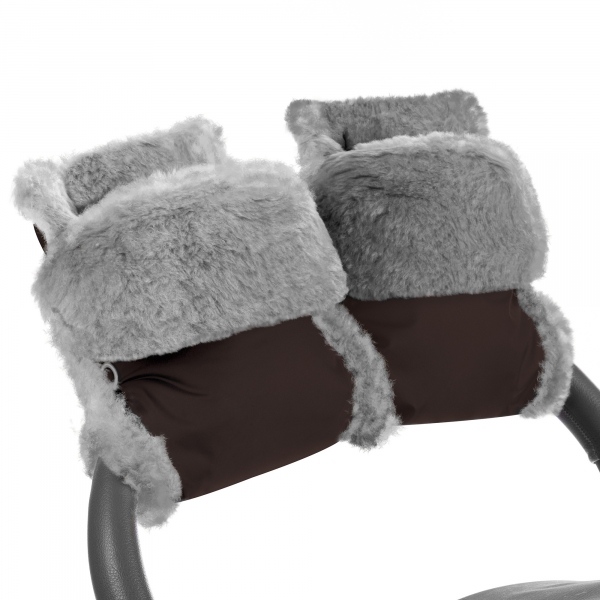Муфта-рукавички для коляски Esspero Christoffer (Натуральная шерсть) Chocolat - стильные рукавички, которые легко закрепляются на колясках даже с раздельной ручкой. Это очень удобно: не нужно носить с собой перчатки, и каждый раз надевать и снимать их, когда понадобится. Производитель использовал качественный овечий мех для внутренней подкладки. Плотный внешний аксессуар не пропускает ветер и влагу. Стандартные оттенки облегчают подбор модели, подходящей к цвету коляски.