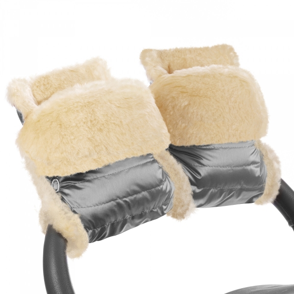 Муфта-рукавички для коляски Esspero Oskar (Натуральная шерсть) Graphite - стильные рукавички, которые легко закрепляются на колясках даже с раздельной ручкой. Это очень удобно: не нужно носить с собой перчатки, и каждый раз надевать и снимать их, когда понадобится. Производитель использовал качественный овечий мех для внутренней подкладки. Плотный внешний аксессуар не пропускает ветер и влагу. Стандартные оттенки облегчают подбор модели, подходящей к цвету коляски.
